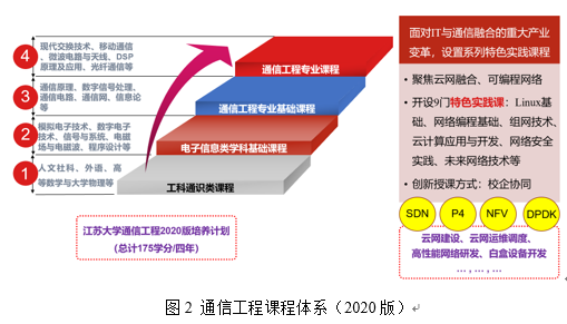 本专业的核心课程为信号与线性系统、通信系统原理;特色课程为通信网、移动通信系统、微波电路与天线、通信工程实践等课程。其中,面对当前IT技术全面融入通信产业的重大产业变革,本专业与时俱进围绕“云网融合”、“可编程网络”等产业迫切需要的技术设置了“通信工程实践”环节,包括Linux基础、网络编程基础、云计算应用与开发、网络安全实践、未来网络技术等9门实践课,由校企教师、专家协同授课,人才培养特色侧重于新一代通信网建设、运维、开发的专业人才培养。
