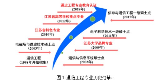 本专业创建于1997年,1998年开始正式招生,2009年被评为江苏大学品牌专业,2010年被遴选为江苏省特色专业,2012年获批江苏省“十二五”高校重点专业,同年入选江苏省卓越工程师(软件类)试点专业,2018年通过中国工程教育专业认证,是全国47所通过工程教育认证的通信工程专业之一。在软科中国大学专业排行榜中,本专业2022年排名为54/282、2021年排名为53/283,均排名为A。专业所在学科拥有“信息与通信工程”一级学科硕士点、“电子科学与技术”一级学科硕士点以及电子信息(通信工程)专业学位授予权。