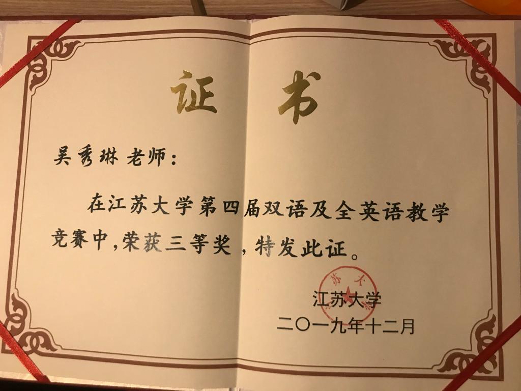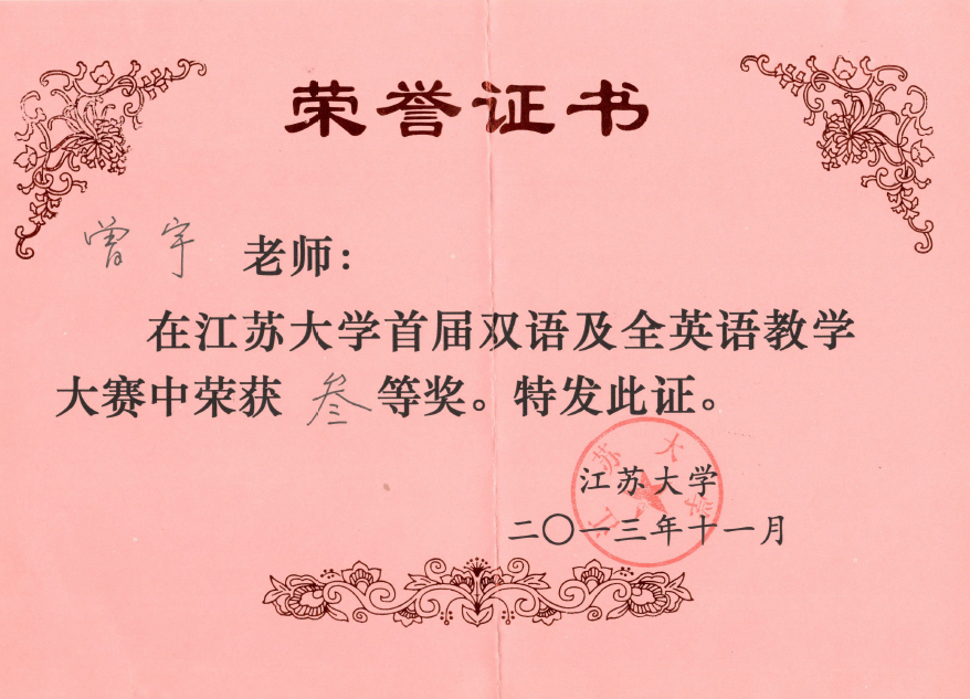 Reform of teaching methods and means: 80% of the main courses use multimedia or electronic teaching plan. The developed multimedia courseware won the teaching achievement award of Jiangsu Province and school.
