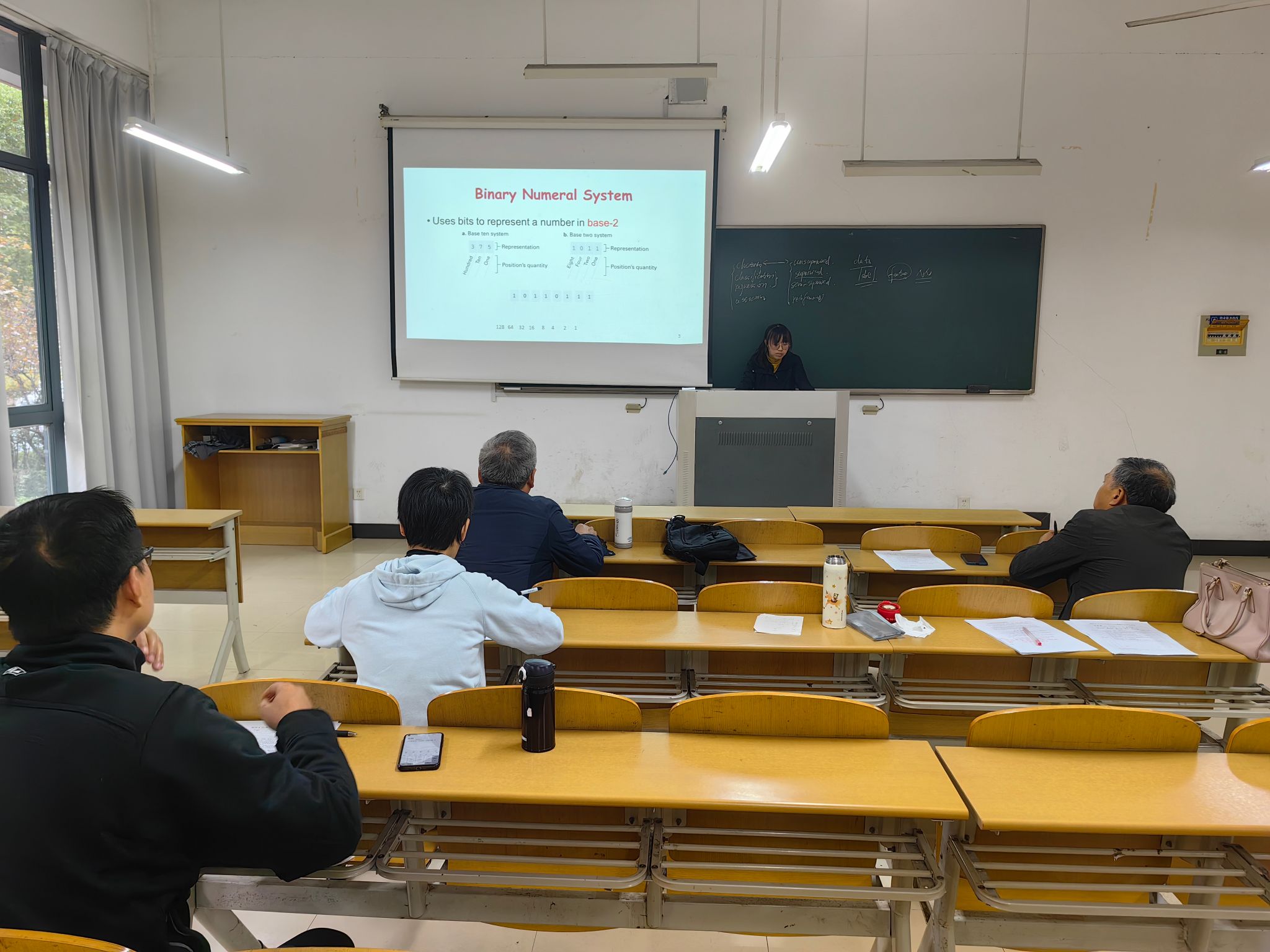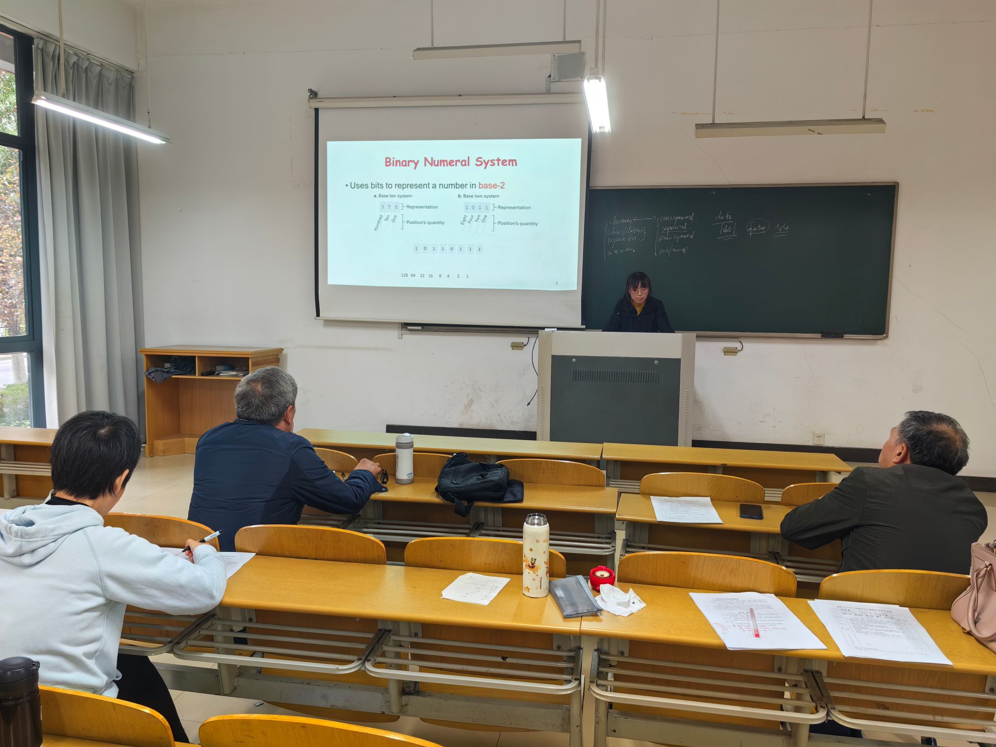 In order to better carry out the undergraduate quality teaching of foreign students, the Internationalization Department of the School of Computer Science organized a trial teaching activity for new teachers. Teachers Shi Leilei and Liu Min were the teachers of the English courses Machine Learning and Introduction to Computer respectively. They held a 20 minute lecture and introduced the K-MEANS algorithm and the conversion of computer system. Each teacher was well prepared, fluent in English, and the classroom effect was good. Finally, the supervisors, Professor Ju Shiguang and Professor Zhan Yongzhao, made comments and suggestions on the teaching methods of the two teachers. Zheng Wenyi, Zeng Lanling and Zeng Yu from the Internationalization Department also participated in the exchange.