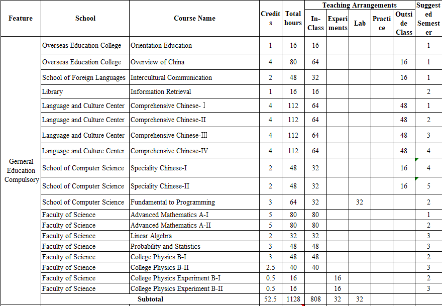 Training Plan (2019 version) Please download the attachment for more information of the courses to be learned in four years.