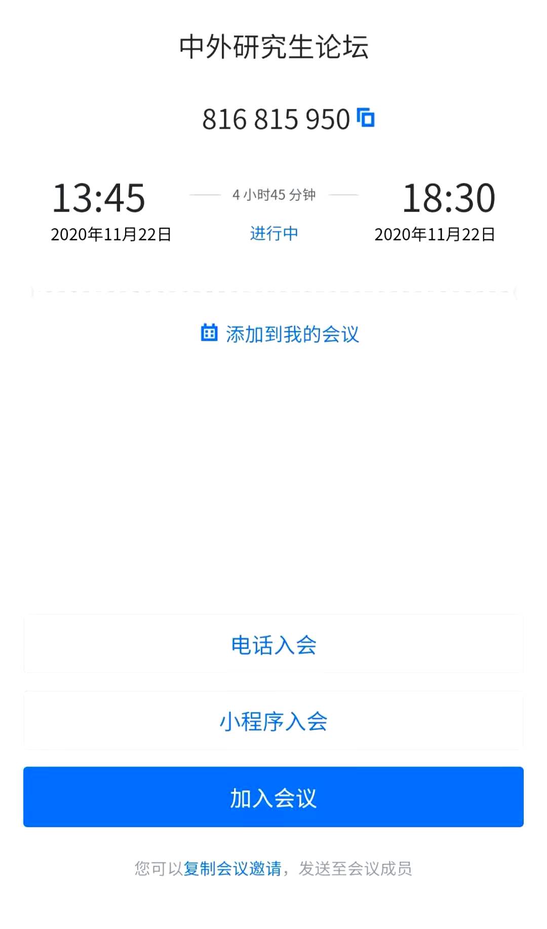 会议时间:2020/11/22 13:45-18:30