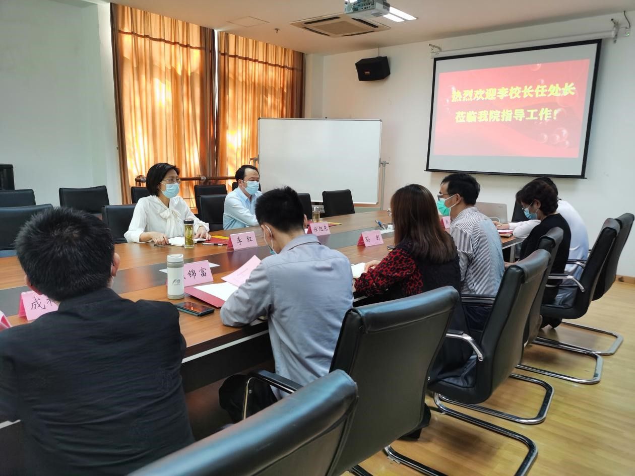 On April 12, Li Hong, Vice President, and Ren Xudong, Director of the Science and Technology Department, went to the Computer College to conduct research and guidance. All middle-level cadres of the Computer College and technical backbones of Yixing (Jiangsu University), a leading county in agricultural science and technology modernization, participated in the research meeting, which was chaired by Sun Guo, Secretary of the Party Committee of the College.