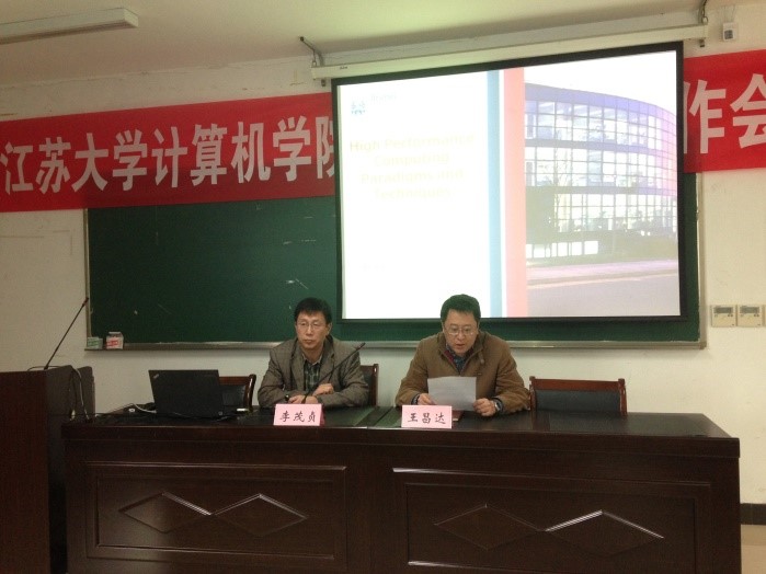 A fascinating academic report is given by Prof. Maozhen Li, who is working at Brunel University and is employed by Jiangsu University as a chair professor. The theme is mainly about High Performance Computing Paradigms and Technique and A MapReduce based Parallel Neural Network for Large Scale Machine Learning. You can hardly find a seat in the conference hall.