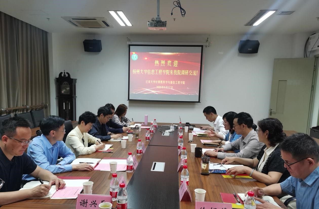 On the morning of May 17th, a delegation led by Lv Hongmei, Secretary of the Party Committee of the School of Information Engineering at Yangzhou University, and Sun Xiaobing, Dean, visited our institute for research and exchange. Sun Guo, Secretary of the Party Committee of the School of Computer Science, Mao Qirong, Dean, and members of the college leadership team participated in the discussion and exchange.