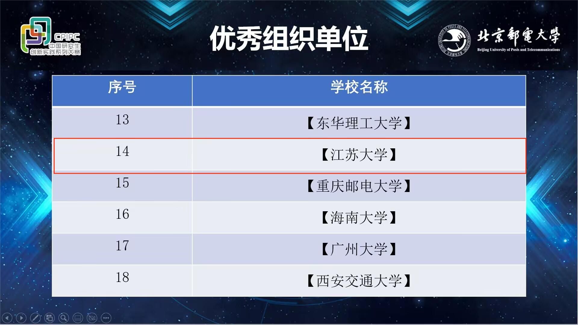 After receiving the invitation letter for the competition, our school actively responded to the call and vigorously promoted the competition through various channels. In order to select outstanding teams to participate in this competition, the Graduate School of Jiangsu University hosted the first China Graduate Network Security Innovation Competition hosted by the School of Computer Science and Communication Engineering. Eight outstanding teams were selected to participate in the national preliminary competition. During the preparation period, Professor Chen Jinfu, Vice Dean of the School of Computer Science, Associate Professor Song Xiangmei, Director of the Department of Cyberspace Security, and mentors provided guidance on topic selection, modeling, programming, and defense, encouraging participating students to fully demonstrate the spirit of Jiang University's daring and ambitious spirit. Jiangsu University has been awarded the title of National "Excellent Organizational Unit" for this competition.