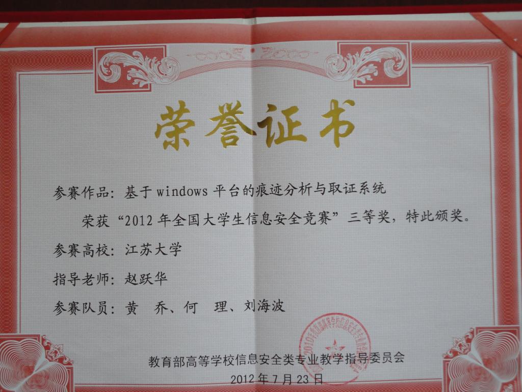 12全国信息安全竞赛三等奖