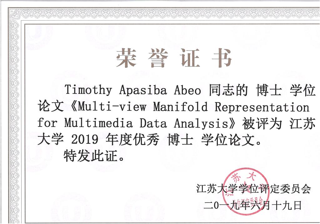 2019 JSU Excellent Doctoral Dissertation Award-Timothy Apasiba Abeo